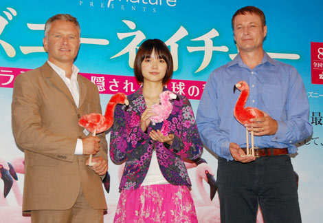论坛讨论连接:http://club.kantsuu.com/showtopic-194219.html 宮崎あおい、自身の語り口に「恥ずかしい・・・」とテレ笑い 自然ドキュメンタリーを映画化するディズニーの新レーベル・ディズニーネイチャーの第1弾映画『ディズニーネイチャー/フラミンゴに隠された地球の秘密』の記者会見が29日、都内で行われ同作の日本版ナレーションを務める女優の宮崎あおいが出席した。完成した作品を観たという宮崎は、自分のナレーションについて「まだ客観的に観れていなくて。嬉しいけど恥ずかしいです」とテレ笑いを浮かべ、心境を明かした。 宮崎あおい (C)ORICON DD inc. 宫崎葵 映画「ディズニーネイチャー/フラミンゴに隠された地球の秘密」記者会見の様子(左から)ジャン・フランソワ・カミレッリ(プロデューサー)、宮崎あおい、マシュー・エバーハード監督 (C)ORICON DD inc. 电影《迪斯尼自然/火烈鸟消失的秘密》的记者招待会现场 (从左)jean·Francois·Camilleri(制作人)、宫崎葵、Matthew单眼 宫崎葵 害羞笑着自己表明不好意思 将自然纪录片拍成电影,迪斯尼的新高度·迪斯尼·自然的第一部电影《迪斯尼自然/火烈鸟消失的秘密》,29日在都内召开记者招待会,担任该作品日本版旁白的女演员宫崎葵也出席了招待会。当被问到观看完成作品时对自己的旁白评价如何,宫崎葵害羞笑着表明:“不能客观地去观看。虽然很开心,但会觉得很不好意思。” 出处http://www.oricon.co.jp/news/confidence/67265/ |