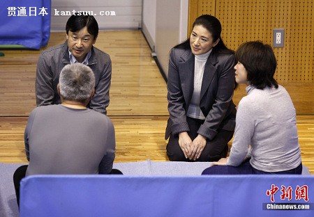 日本皇太子德仁同雅子妃慰问震灾避难灾