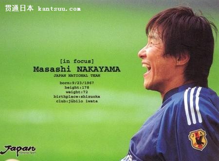 中山雅史,1967年出生于日本的静冈县,司职前锋。从藤枝东高中升入筑波大学之后,1990年正式加入了当时JSL的雅马哈发动机队(磐田喜悦队前身)。中山雅史在磐田喜悦效力直到2009年,帮助球队一共获得了3次联赛冠军,而中山雅史本人则拿到了2次J联赛的金靴奖,4次入选最佳阵容,在1998年获得了联赛的MVP。