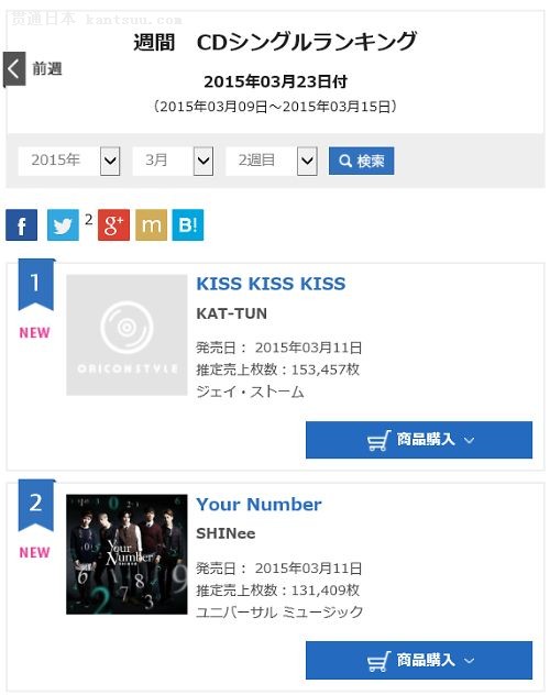 关八新单获9月18日Oricon排行榜第一名