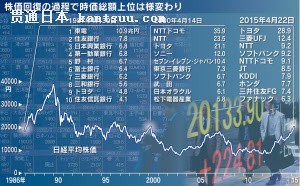 日経平均の終値は前日比224円(1%)高い2万0133円。今月10日の取引時間中に2万0006円まで上げた後に伸び悩んだが、中国の金融緩和で勢いが戻った。 株高の底流には、日欧を含めた緩和マネー増大がある。見逃せないのは、肝心の企業が構造改革やM&A(合併・買収)などで成長力を取り戻し、世界の投資資金を引き寄せている点だ。 同じ日経平均2万円でも、担い手がかつての「規制産業」から「革新企業」に変わってきたという特徴がある。 日経平均が初めて2万円に乗せたのは1987年1月30日。時価総額で上位を独占していたのは東京電力と都市銀行だった。00年4月は通信関連がはやされ、利益成長の裏付けがないまま株価が上昇してPER(株価収益率)で100倍を超える企業が相次いだ。 2度のバブル、金融危機や震災、超円高などを経て、いま存在感を示しているのは、自らの努力で価値を高めた企業だ。 トヨタ自動車は販売台数が伸びなくても利益が出るようコスト構造を抜本的に見直し、15年3月期に2兆円超の純利益を見込む。工作機械で圧倒的な世界シェアを握るファナック、製造小売りの事業モデルで海外市場を開拓したファーストリテイリングなども時価総額を増やした。 00年に上場した楽天をはじめ、「ネット関連など成長性が高い投資先が増えてきた」(英運用会社ベイリー・ギフォードのドナルド・ファーカソン氏)のも大きい。14年の新規上場はリクルートホールディングスなど80社近くで、7年ぶりの多さだった。 東証全体の時価総額は600兆円強で89年末のピーク(611兆円)に迫る。足元では、トヨタやファストリのほか、三菱電機やブリヂストンなど最高益を更新して株価も今年に入ってから上場来高値をつける企業が続出している。株高が利益成長を伴ったものとなり、日経平均のPERは18倍台と国際水準に近づいた。株式市場が正常化してきたといえる。 経営規律を奪う要因だった金融機関と企業の株式持ち合いは劇的に減り、効率経営に目を光らせる外国人株主の比率が3割に高まった。株式保有の構造変化など市場の規律を生む「舞台措置」が徐々に整い、企業の変革努力と相まって株高につながるという構図だ。 日経平均はこの2年半で2.3倍に上昇し、短期的な過熱への警戒が出ている。米国の景気・利上げや欧州問題など波乱要因も多い。 |