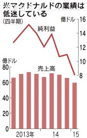 米マクドナルド純利益33%減 1~3月、世界で苦戦