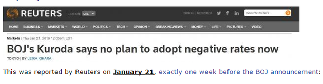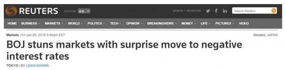 1月29日,日本央行意外引入负利率: