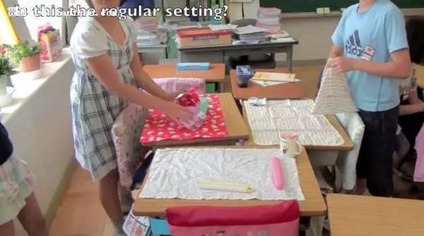 午餐时间一到,大家就纷纷拿出桌布和餐具。