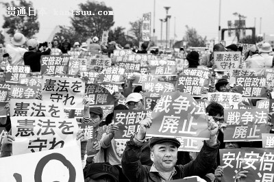 5月3日是日本宪法纪念日。当天,5万名日本民众在东京举行集会,呼吁守护宪法、废除安保法,并要求践踏宪法的安倍政权立即下台。新华社发 |