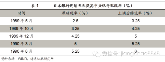 但资产价格上涨不是永久的,为了防止泡沫继续扩大,日本央行最终提高贴现率。 日本银行分别于1989年5月31日、10月11日和12月25日先后三次上调了基准贴现率;翌年3月20日和8月30日两次再度上调贴现率,基础利率从上调前的2.5%升高到6.0%。短时期内基准利率的急剧提升,最终成为“泡沫”崩溃的导火索,股价、地价自此一落千丈,尤其东京、大阪的房屋价格,更是经历了超过两位数的暴跌。