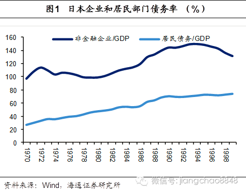 1.3. 财务投机助长股市泡沫 所谓财务投机,是指企业将低成本的资金转手投向具有高回报率的金融资产,举手之间获得可观利润的行为。 低融资成本下,企业财务投机造成大量资金涌入信托、银行等金融机构,即资金“脱实向虚”。 1985-1990年,随着利率下行和日本金融自由化改革的加快,企业通过发行股票、债券等方式可轻易获取低成本资金,而金融商品和基金投资的回报率提高,为企业财务投机提供了土壤。 另一方面,对以出口为主的日本企业来说,日元升值降低产品竞争力和需求,制约企业投资实业的热情。不少企业将筹到的低成本资金进行金融投资而不是投资实业,随着企业财务投机的活跃,企业资金大量涌入信托银行等金融机构。 信托等金融机构对于股票市场的投资力度不断加大。 根据日本银行的数据,在 1985~89年间,各机构投资者的股票投资规模快速扩张,信托公司投资45万亿日元,占据首位,比80年代前期增长了16倍。投资信托公司虽然投资额只有17万亿日元,但比80年代前期增长了近18倍。 “高股价→企业低成本融资→财务投机、资金流向金融机构→机构投资者增加股票投资→高股价”循环形成。 在这样的自我循环下,日本股市的泡沫迅速膨胀。1983年的日经指数平均为8800点,1989年12月29日达到38915点的顶点,比1983年上涨了3.4倍。同时股票市盈率也达到了250倍的高水平。 1.4. 货币政策终转向,刺破泡沫 高企的房价,暴涨的股市,让日本央行意识到需要及时制止资产泡沫扩大,但在其准备提高中央银行贴现率的1987年,美国爆发“股灾”,股市价值损失5000亿美元。考虑到国际金融市场的动荡,以及防范股灾对日本经济的影响,日本央行放弃了缩紧银根计划,继续实行扩张性货币政策,使得建立在地产和股市上的泡沫经济再度壮大。 资产价格的上涨趋势远超过可控范围。 日本物价指数从1985年的114.5上涨至1989年的118.7,CPI年均增长1%左右,但日本城市土地价格指数1985年的129.4上涨至1989年的166.1,年均增长6%-7%左右,日经指数左右从1985年的11000点左右上涨至1989年的38000点左右,年均增长35%左右。 金融机构的不断注水,对资产价格上涨的信心,该时期日本的非金融企业和居民部门加杠杆情况严重,债务负担加重。 非金融部门负债比从1985年的113.9%上涨至1989年的139.2%,居民部门负债比从1985年的48.9%上涨至1989年的68.8%。