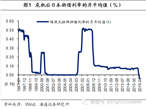 随后 开始实施 “零利率政策”, 日本央行将银行间隔夜拆借利率目标定为零,试图提高银行放贷积极性,以提振消费投资,并改善人们的通货紧缩预期。零利率政策的实行对经济复苏起到了一定的积极作用,日本经济于1999年春季开始停止下滑。但2000 年 8 月日本银行过早解除了零利率政策,提高隔夜拆借利率至0.25%。由于日本经济并未完全走出通缩,且当时又受到美国IT泡沫破灭的影响,2000年后再次经济衰退。
