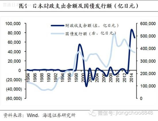2012 年 QQE 推出, 明确设定通货膨胀目标2%,除增加了长期国债的购买额度和品种外,日本央行还开始购入非国债资产(如ETF和J-REIT)。然而近年来,日本经济一直举步蹒跚,国内通胀水平在14年有所好转、但15年又再次回落,离2%的目标也有距离。为此,日本央行于 2016 年 1 月推出 “ 负利率 ” 政策,货币宽松层层递进,但收效仍不明显。 3.2. 财政发力有限,债务率上升 除了货币大幅宽松外,日本政府还不断加大财政政策力度、托底经济, 通过减少税收、增加政府支出和转移支付等手段来刺激消费和投资。1991年以来,日本连年财政赤字,最严重的一年赤字达到34176亿日元,扩大赤字使得政府部门的债务率(政府债务/GDP)从不到90%上升至200%以上。