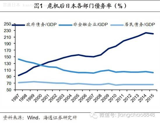 与此同时,每年的国债发行额也呈上升态势,从1991年的6.8万亿日元上升到1998年的34万亿日元,次贷危机后的年度发行额甚至突破50万亿日元。日本居民企业部门去杠杆,政府部门加杠杆,但政府债务率不可能无止境上升,因此财政发力也有顶。