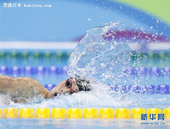8月6日,日本选手萩野公介在比赛中。 当日,在里约奥运会男子400米个人混合泳决赛中,日本选手萩野公介以4分06秒05的成绩夺得冠军。新华社记者费茂华摄 |
