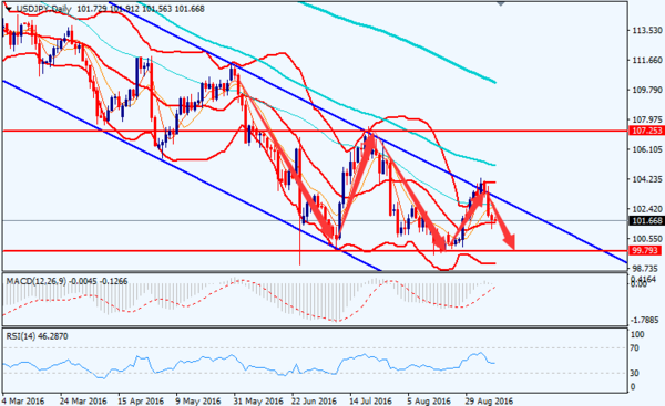 今日亚盘,日本数据显示,日本第二季度实际GDP年化季率终值为0.7%,高于0.2%的预期值。日本的资本支出稍微有所提高,但是更高的库存和公共投资上升促进了数据的上修。 澳大利亚方面数据显示, 澳洲7月商品及服务贸易赤字为24.10亿澳元,小于前值31.95亿澳元赤字和预期值27亿澳元赤字。 本周初,澳洲联储维持1.50%的官方利率不变,随后已经公布的澳洲二季度GDP比增速达到3.3%,相比其他发达国家,两者均属于较高水平,显示出澳洲经济基本面总体表现依然积极。此次澳洲贸易帐数据好转或许已提前为市场所预期。 日线图上,美元/日元上测下行通道上轨未能成功,又回落至下行通道里面,目前在布林带中轨持稳; 50日均线、100日均线、200日均线均现死叉信号,RSI掉头向下,汇价下行趋势明显;汇价将下测强阻力位98.81-99.79区域,该区域为近三年的低位,另外,当美元/日元跌至此区域时,日本政府可能出手干预汇率,请投资者保持谨慎。