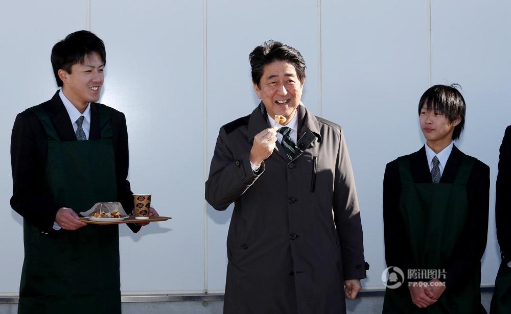 日本首相安倍晋三访问福岛灾区 试吃当地草莓