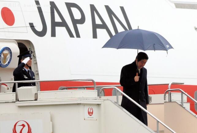 安倍在普京前到达日本山口宇部机场(图片来自《朝日新闻》)