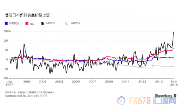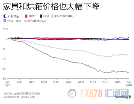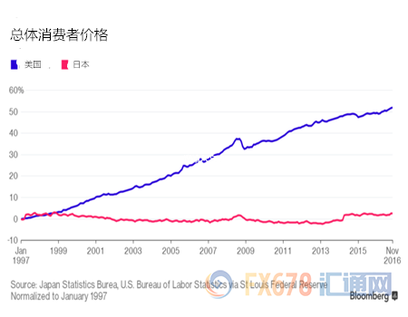 (原标题:回归通缩代表所有物价下滑?看了日本情况再说!) 汇通网12月28日讯—— 日本首相安倍晋三和日本央行行长黑田东彦在2013年时承诺将日本拖出数十年通缩的泥潭。两人的承诺至今仍未兑现,日本11月核心通胀已经录得九连降。虽然过去20年美国商品的价格升幅超过50%,但日本的情况是这样的: