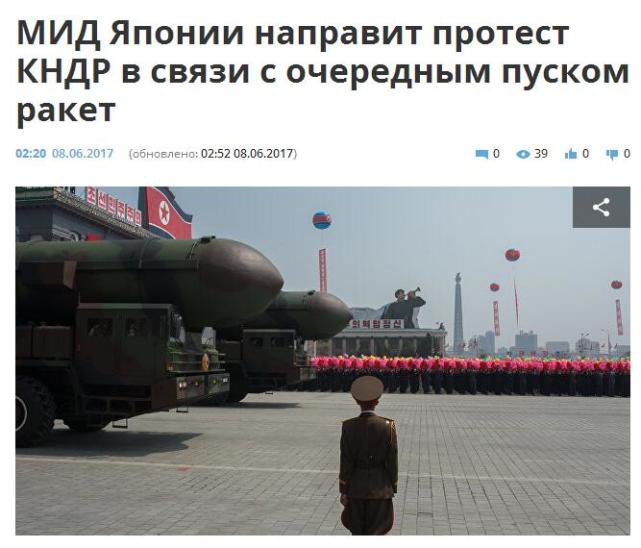【环球网综合报道】俄新社6月8日援引日本广播协会(NHK)消息称,日本外务省就朝鲜再次导弹发射,通过外交渠道向朝鲜提出抗议。 韩国联合参谋本部此前表示,朝鲜从元山地区一次发射了数枚疑似反舰导弹的飞行物。日本政府也对此进行了确认。 |