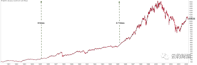 直到1989年12月末,日本央行才对资产价格的膨胀做出来了姗姗来迟的回应,贴现利率被从2.5%提至4.25%,并于1990年提高到6%。一年之间,日经指数跌了50%。房地产价格也在接下来的四年中腰斩。 随着投资者信心被削弱,资产价格的下跌形成了一个负反馈螺旋。1993年,一位同事这样类比日本投资者的心理:犹如一个不敢走出人行道的行人,因为如果尝试了的话,他们已经被碾压三次。 在崩盘之前的十五年间,日经指数上涨超过了900%。与九十年代美国如出一辙的亢奋的投资者情绪,以及日本公司将会接管全球几乎所有主要行业的信仰,共同驱动了日股的疯狂。日本房地产泡沫则进一步吹大了股市泡沫,前者的规模两倍于本世纪初美国所经历的房地产泡沫。简而言之,它是一系列里程碑式事件和并发事件的产物。 所以,把美国科网泡沫和随后的房地产泡沫(乘以2)加到一起,大概就是1990年导致日本股市崩盘的背景了。这也使得日股在那个年代的经历和今天的美股并不相同。 云豹财熵个人资产管理的小工具 |