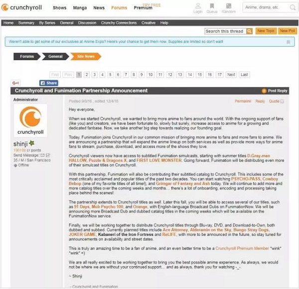 迫于压力,昔日对头Crunchyroll与Funimation宣布合作 由于某些特殊原因,Netflix扩张的脚步并没能踏入中国,但这并不代表其放弃了中国市场。面对中国的特殊国情,Netflix选择了与国内视频服务商合作的方式来进行内容提供,如上一季度完结的《小魔女学园》,Netflix获得了本作的全球播放权,BiliBili的国内播放版权也是从其手中获得的;而在今年4月,Netflix官方宣布与爱奇艺达成内容许可协议,通过内容分发“曲线救国”。