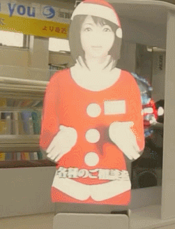KOTAKU的编辑表示据说这种CG促销员在日本已经存在了超过7年,但他从来没有见到过。其实不只是在超市,这种服务类型的CG人员还会出现在很多场合,例如在机场、银行等,现在愈发普及起来。