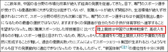 面对日本雄厚的短跑人才储备,中国的黄金一代老去之后该何去何从? 早在2008年,北京体育科学院助理研究员魏文哲在日本科研杂志上刊发了《中国陸上競技の新たな挑戦》(《中国田径赛事的新挑战》)一文,指出了中国田径的梯队选拔难题中的社会学因素:以往中国田径的人才大都是“苦孩子”出身,家庭条件一般但能吃苦,现在随着生活水平的提高,相比其他商业化操作比较强的运动项目,家长让孩子练田径的并不多,因为实在是太苦太累。