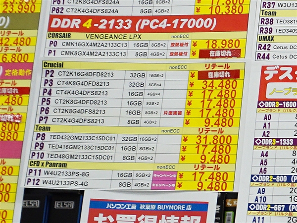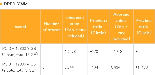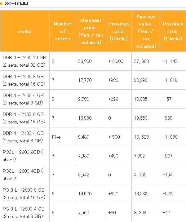日本硬件大站PCWatch近日对秋叶原市场的内存价格做了一番调查,结果很悲惨,DDR4价格全线飙升,DDR3、SO-DIMM笔记本内存也同样一路走高,无论最低价还是均价都已经刹不住,大量型号的涨幅都在10%左右甚至更高。