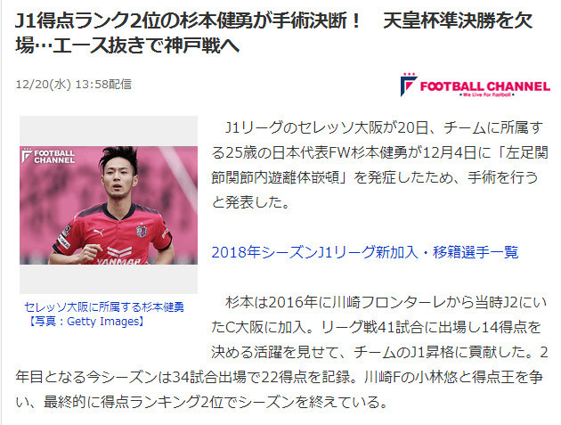 腾讯体育讯 北京时间12月22日 日本球队川崎前锋、鹿岛鹿角、大阪樱花获得2018年亚冠参赛资格,还有一个名额在天皇杯中产生,最近参加亚冠的日本球队在转会市场上动作频频,有意补充强援加强球队的实力。 内田笃人即将重返鹿岛鹿角 据多家日本媒体的报道,效力于德乙柏林联队的边后卫内田笃人,有望在冬窗回归J联赛加盟老东家鹿岛鹿角,鹿岛鹿角已经向柏林联提交了报价,近期两队将展开进一步的谈判,鹿岛可能会直接支付20万欧元违约金把内田笃人带走。 内田笃人曾经是日本国家队的主力右后卫,2006年加入鹿岛,2007-2009赛季帮助鹿岛实现J联赛三连冠的伟业,2010年转会至沙尔克04,曾与蒿俊闵成为队友,今夏内田笃人自由转会至柏林联,但是无法在柏林联站稳脚跟,一旦内田笃人重返鹿岛鹿角,很可能在下赛季亚冠小组赛与申花交手。 鹿岛外援边锋基本确定留队 上个赛季来自巴西的外援莱昂德罗租借加盟鹿岛鹿角,表现非常抢眼,司职边锋的莱昂德罗各项赛事出场31次打进12球,成为鹿岛不可或缺的进攻核心,据巴西媒体的报道,莱昂德罗基本确定被鹿岛买断,莱昂德罗也愿意留在鹿岛,上个赛季亚冠,鹿岛鹿角与广州恒大在淘汰赛相遇,当时莱昂德罗两场比赛都首发出战,他的表现给人留下深刻的印象。 大阪樱花前锋杉本健勇接受手术无缘天皇杯 本月初的东亚杯,大阪樱花前锋杉本健勇原本已经入选了日本国家队大名单,但是由于伤病问题提前退出国家队,据日本媒体《足球频道》的消息称,杉本健勇由于左脚脚踝受伤需要接受手术,确定无缘本周末进行的天皇杯半决赛。 上个赛季杉本健勇表现非常出色,出场34次打进22球,拿到J联赛的银靴奖,帮助大阪樱花拿到J联赛的第3名获得2018年亚冠的参赛资格,从目前的情况来看,杉本健勇很可能需要长期缺阵,甚至可能会错过明年亚冠前期的比赛,杉本健勇的伤缺对大阪樱花来说是不小的打击,如果大阪樱花无法拿到天皇杯的冠军,则需要打亚冠附加赛,最终有可能与权健处在同一小组,如果大阪樱花拿到天皇杯的冠军,将会进入广州恒大所在的小组。 (图科) |