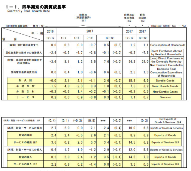 [摘要 ]日本经济四季度GDP初值增长0.5%,虽然逊于预期但依然创下八十年代末日本经济泡沫破裂以来最长连续增长记录。 周三,日本内阁府公布,2017年四季度实际GDP年化季环比增长初值为0.5%,日本预期1%,前值由2.5%修正为2.2%。 虽然逊于预期,但日本经济依然实现八个季度连续增长,创下了上世纪八十年代末日本经济泡沫破裂以来的最长连续增长记录。 据日本内阁府发布的数据,日本四季度GDP不及预期主要是由于私人住宅投资出现2.7%的负增长。四季度,私人消费实际增长0.5%,私人企业设备投资增长0.7%,私人消费在四季度日本经济增长中扮演重要角色。 2017年全年, 日本经济增速为1.6%,高于2016年的0.9%。2017年,日本内需贡献了1.0%的增长,外需贡献了0.5%的增长。 此外,日本四季度实际GDP季环比初值 0.1%,低于预期 0.2%和前值 0.6%。日本四季度名义GDP季环比初值 0.0%,低于预期 0.4%,前值由0.8%被修正为0.6%。日本四季度实际GDP平减指数同比初值 0.0%,和预期相符,前值由0.1%修正为0.2%。 日本经济再生大臣茂木敏充表示,私人领域的需求支撑了经济增长,消费支出的增长受益于工资增长。就业环境良好,日本官方预计经济将持续增长。预计民间消费、资本支出未来将继续引领经济复苏。风险方面,日本需方面认为关注海外经济不确定性及金融市场动荡。 数据发布前,野村曾预测,在经历了夏季国内私人需求的低迷状态后,四季度,日本国内私人需求,尤其是服务业需求将会出现增长。资本支出也将增长。建设投资预计将出现下滑,但是受益于出口增长,公司的设备投资有望增长。 周三,日经225指数小幅高开,截至发稿,报21319点,涨0.35%。 |