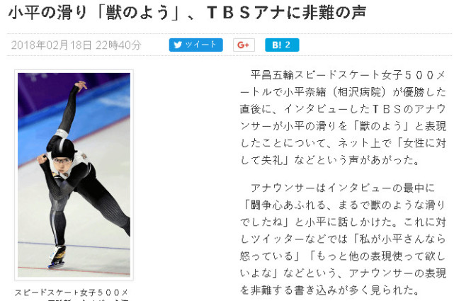 日本这么夸人?记者称女夺金英雄野兽 受网友怒批