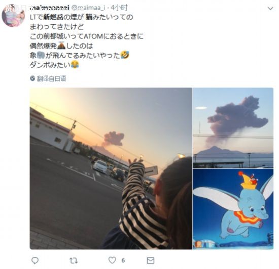 还有日本网友指出,前段时间火山喷出的烟尘像一只“小象”。