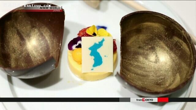朝韩首脑晚餐甜点图案包含独岛 日本政府:无法接受