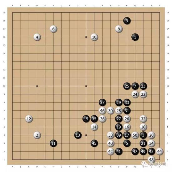 上野爱咲美猜到黑棋先行。 开局相当传统。 白8挂角时,黑9小鬼把门积极。 黑13在下边布阵,白14吊一个,李赫行棋大气。 黑15飞攻,上野开始展现力量。 白16镇,黑17顶住想把白棋走重。 白18靠下转身,李赫在右边打出一块。 白28扳时,黑29夹!上野的风格完全不似平和温柔的日本女棋手。 白30挺出作战,黑31断,棋局瞬间激烈起来。 白34爬求活,黑35压住,如果下方就这样都被黑棋围住,那效率太高了。 黑37强硬跳封,上野真是剽悍! 白38、40只得硬干,双方你死我活。 黑45飞到,下方白棋苦涩。 白46团时,黑47先要求补活右下。 因为白棋右边也没活,李赫白48、50只得破眼,要求对杀。