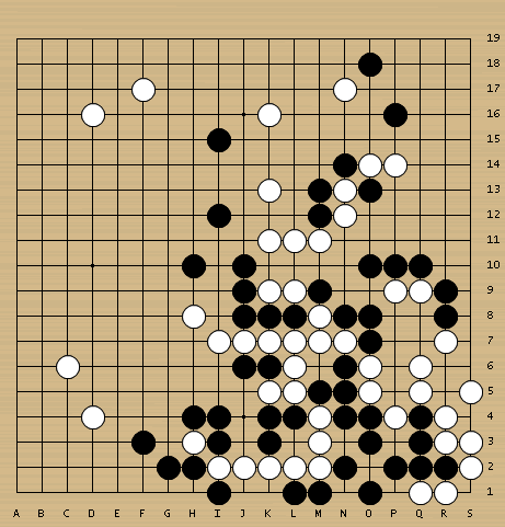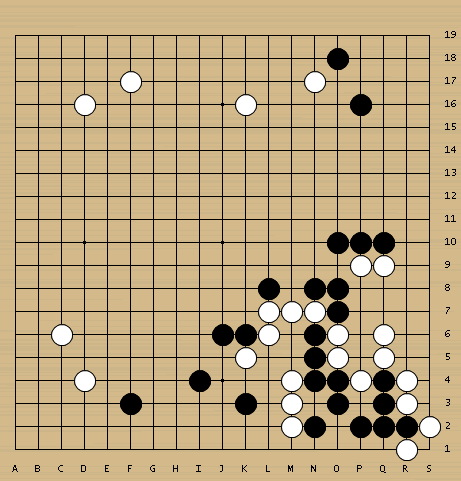 白4冷静,右边一块黑棋也成被告。 白6飞点,追究黑棋的同时做活自身。 黑13无奈补活。 白14扳先手,白16尖,右上黑棋又得处理。 上野不甘被动,黑17强行跳下,还要和白棋对攻。 白22吃住两子、24跳,感觉黑棋已经走远了。 黑25以下是最顽强的抵抗,黑37、39强行做劫,上野的血性还是很值得赞叹。 读秒声催促下的李赫保持了冷静,白48消劫,完全把控了局面。 白50选点合适,黑棋实地明显不足了。 黑51以下最后一搏,但被白56拔花后,黑棋就算吃掉中腹白棋,左边被白棋围成大空,黑棋也无力争胜了。 上野爱咲美爽快投子。