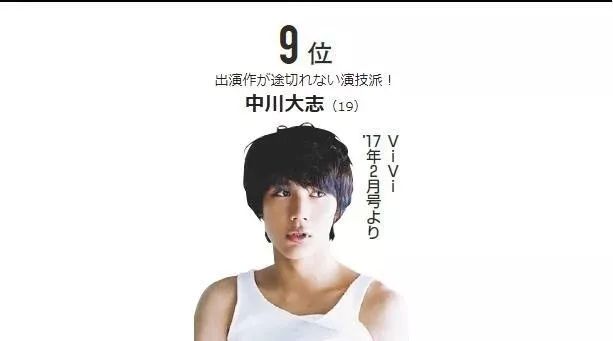 1996年11月16日出生在加利福尼亚,主演电影《OVER DRIVE》将于6月1日公开,在7月上映的电影版《Code Blue》中也有出演。 以上为今年上半年vivi杂志票选的国宝级帅哥,有你Pick的吗? (责编:maiko) |