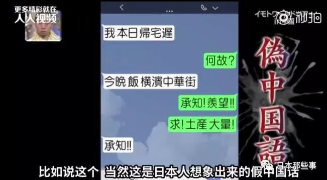 是说现在日本很流行在SNS上用伪中国语来对话,因为日文里有不少汉字,所以伪中文大概就是这种感觉的: