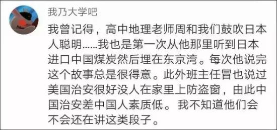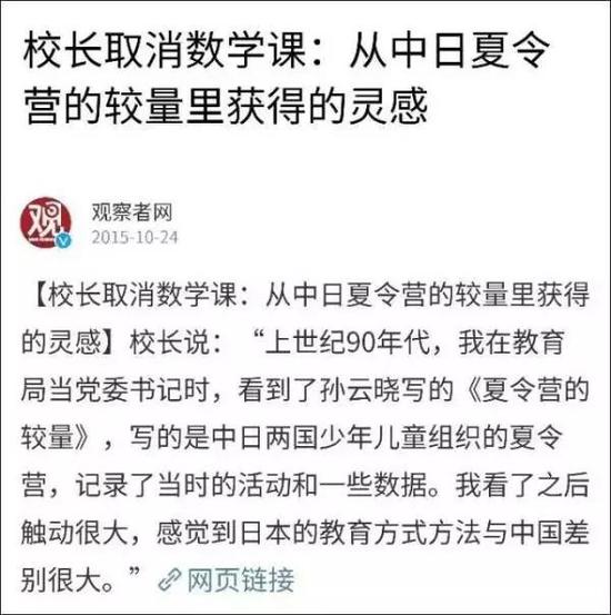 如今,信息的“单向灌输”已经很难实现,朋友圈、微博上“互撕”反而成了常态。 别以为那些神化日本的段子只是段子而已,精神与物质从来都是辩证的关系。谎话说三遍,就成了真话。长他人志气,灭自己威风,说多了就会让自己走弯路。 一个真实的例子,有中国校长学习了“中日夏令营”的段子(中国孩子是书呆子,比日本孩子生存能力弱)以后,就真的取消了学校的数学课。