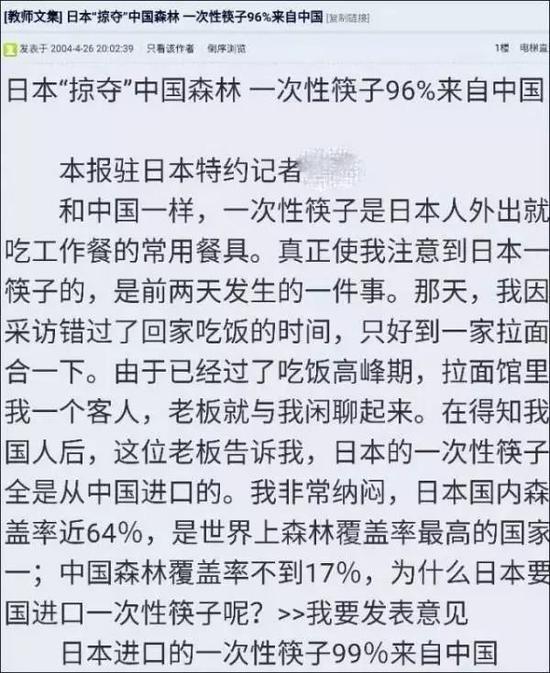 日本从不生产一次性筷子96%来自中国?真相是这样