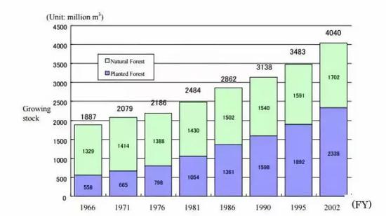 1 中国:停止采伐后,市场“爆买”日本木材 在惊艳涨势的背后,中国的木制品行业成为日本木材增量的主要贡献者。2017年日本全部木材出口中,有约40%流向了中国市场。而在今年前4个月的出口木材里,中国订单的比例进一步上升到了70%。 中国是全球第二大木材消耗国。虽然中国的森林覆盖面积位居世界前列,但覆盖率低、人均面积小、林木质量差的特点意味着中国与森林国家无缘。此前据人民日报报道,国内天然林大径级木材资源已“采无可采”,而相应的需求仍在不断增加。另一方面,储备林、速生林产业虽已颇具规模,但仍需时间进行沉淀。这些客观因素决定了中国对进口木材的依赖较大。 2015年4月1日,东北、内蒙古多家重点国有林区宣布全面停止天然林商业性采伐。时任国家林业局副局长张建龙随后表示,到2017年将全部停止天然林商业性采伐。而到了2017年上半年,一场环保督查旋风的突然降临又使得大量粗放经营的板材企业被勒令停产整顿。一时间,木材原材料供不应求,引发板材价格大幅上涨。 在自然禀赋、产业需求、环保因素叠加影响之下,2017年中国进口木材合计突破一亿立方米,达到10849.7万立方米,同比增长15.6%。这为包括日本在内的诸多木材出口国带去好消息。近年来,中国“爆买”日本木材的新闻频频出现,从侧面佐证了木材贸易的新动向。 2 日本:森林蓄积量40年间翻番 在大众印象里,日本素来以国土狭小,资源匮乏的形象示人。然而就木材而言,日本是世界上为数不多的森林国家。根据日本林野厅网站日发布的《2016年度森林与林业白皮书》显示,日本的森林面积达到2508万公顷,占国土面积的三分之二,森林蓄积量达到了49亿立方米。作为对比,国土面积是日本26倍的中国截至2016年底的森林蓄积量约为151亿立方米。白皮书特别提到,日本在战后营造了大面积人工林,占全部森林的61.2%,而其中半数以上已超过10龄级,正式进入主伐期和资源利用期。 然而考察日本的植树历史可以发现,日本也曾走过一条“先发展,再治理”的老路。在第二次世界大战之后,为满足战后基础设施重建需要,日本自1945年至1965年间大量砍伐森林获取木材。在这段时间中,日本政府鼓励民众开垦北海道地区,将大量森林地带伐平改建为牧场。然而迫于北海道苛刻的种植环境,全部4.5万户开垦家庭中,只有28.6%的人选择留下。这使得开垦的大量空闲农牧场沦为因肥力流失而无法再度生长树木的荒地。 为扭转这一情势,同时扶植本国木材行业以支持日本进入60年代后的经济腾飞,日本政府于1964年颁布《林业法》,提出政府“应制定计划定期关注森林资源状况,并对重要的林木资源进行公有化”。同时,1897年颁布的《森林法》也进行修订,增设“森林与林业基本计划”。该计划对全国森林状况作出评估,制定15年内的植树计划。日本农林水产省每5年对该计划进行一次修改。 在政府主导下,日本森林不仅止住了萎缩趋势,同时为经济腾飞期间的建筑业及造纸业提供了支撑。在此期间,日本政府首先禁止了盲目砍伐,而是在小块的,分布式的区域种植以纸浆用树种为主的速生林,并进行轮伐。在一些区域,种植者主动推到年老的,高大的树,提高低矮幼树的光照条件,而老树残根随着时间推移缓慢腐化,为新树苗生长提供沃土。 进入70年代后,随着日本进口木材数量增加,以及全国范围的植树运动取得成效,日本在植树上放慢脚步,转而将精力转向森林经营权的改革以及私有林的发展。进入21世纪后,日本政府的林业工作重点又从产业发展角度向保证物种多样性以及可持续发展方向倾斜。 根据联合国粮食及农业组织发布的日本林业政策研究报告的统计数据显示,从1966年到2002年,日本森林蓄积量从19亿立方米增加至40亿立方米。其中,人造林蓄积量从5.6亿立方米上升至23.4亿立方米。
