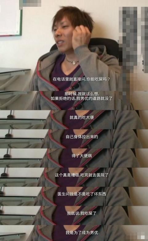 不仅仅是如此,再一次采访中,清水健因为接到了一个电话,对方直接问他能不能吃翔,听到了这一个话估计清水健都已经懵了,但是为了工作清水健就算是再不愿意也是一件没有办法的事情,于是就吃了自己拉出来的翔!