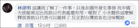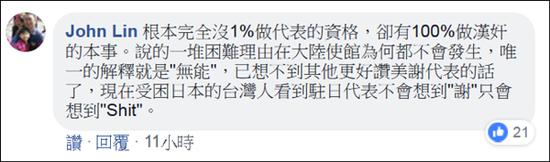 台“驻日代表”谢长廷 图自“中时电子报” 不过,自我检讨的同时,谢长廷也不忘质疑中国大陆,称传言说台湾人“偷偷去搭他们的车,还要表明自己是中国人”,让“网民羞愤,有人趁此宣传感觉持有中华人民共和国护照是骄傲的事情”,自己也因此被骂。 他还要台湾民众“冷静地想一想”大陆运送旅客的行为是否可行,试图带一波节奏,让人认为旅客是由日方安排离开机场的。 不过在贴文下方的评论中,台湾民众却根本无法“冷静”,他们指责谢长廷及“驻日代表处”无能,戏称其为“助日代表”,认为“找中国大使馆肯定比找‘助日代表’还有用”。