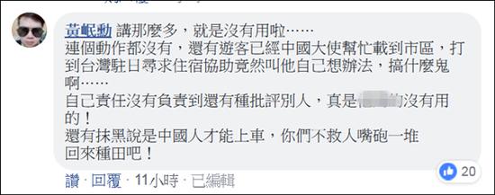 对谢长廷 “证明中国人”的言论,网民也是不买账的:“抹黑说是中国人才能上车,不救人嘴炮一堆。”