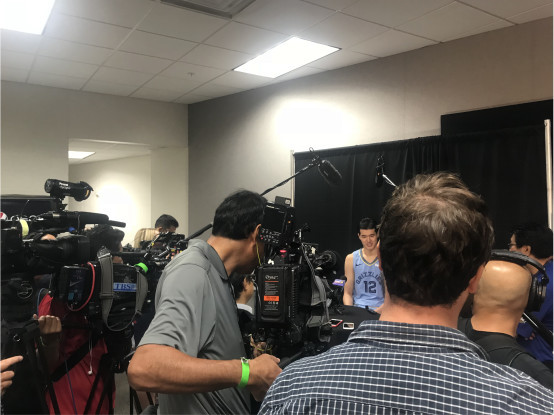 24岁生日这一天,渡边雄太为自己的首次季前赛划上了一个圆满句点——在孟菲斯灰熊主场与休斯顿火箭的比赛中,他第四节出场,比赛行将结束前,左手抛投入网。 与NBA球队签下双向合同,在季前赛出战,未来还有可能在常规赛博得更多上场时间,对日本篮球而言,渡边雄太正在创造历史。尽管之前他的前辈、日本人田卧勇太曾短暂为菲尼克斯太阳队打过4场常规赛,但论及在球队的地位,以及实力,与渡边雄太都很难相提并论。事实上,渡边已经成功地吸引了美日两国篮球界的关注,这在之前是不可想象的。 渡边雄太很容易让我们想起日本漫画《灌篮高手》,有趣的是,他也是这部漫画的粉丝,他曾经告诉腾讯体育,自己是漫画中仙道彰的迷弟。遗憾的是,井上雄彦在绘制《灌篮高手》时,日本篮球并没有什么高光时刻,因此直到漫画的最后章节,主角之一的流川枫也没有去成美国,更遑论打NBA了。如今,渡边正在改变日本篮球历史,井上雄彦真的不考虑重新绘制《灌篮高手》吗? 闯入篮球世界最高殿堂的日本少年 渡边雄太给孟菲斯带来的变化,从媒体日开始。 一年前,当腾讯体育驻孟菲斯前方特派员出席媒体日时,灰熊总经理克里斯-华莱士对我们的出现感到十分惊讶。这是灰熊队史上第一次出现随队国际媒体的身影。还记得去年的这一天,灰熊队的媒体日显得颇为冷清,只有不到十位当地媒体,在随后一个赛季的里,也总是这些老面孔不断地出现在赛后更衣室和新闻发布会现场,很少出现新的面孔。 本以为今年媒体日的气氛和去年并不会发生太大的变化,然而当我们一跨进媒体室的大门,便意识到自己错误地估计了形势。媒体日刚开始,一群记者已经架好了摄像机将一名球员围在中心,并非备受关注的四号新秀小贾伦-杰克逊,而是灰熊用双向合同签下的球员,日本球员渡边雄太。 1994年10月13日,渡边出生于日本香川县三木町,如今身高2米06,司职前锋。 2013年,渡边雄太就在日本男篮美籍主帅汤姆-威斯曼的帮助下,闯荡美国,加盟康涅狄格的圣托马斯摩尔高中,一年之后,他又进入NCAA一级联盟的乔治-华盛顿大学。也就是此时,《日本时报》用“天选之子(The Chosen One)”为渡边雄太造势。 听起来很美好,但一切并不容易。从日本的超级球星,到美国篮球的边缘球员,且还存在英语不通的问题,渡边雄太的艰难可想而知,甚至连他身边的人都不赞成他去美国,但渡边还是想圆一个NBA梦想。从高中到大学,渡边雄太在美国遭遇的问题,不只是篮球场上的碰撞,还有学业。他甚至透露这更艰难,因为他的英语不好,只能更加刻苦,大一整个学年,他除了训练和比赛,其他时间必须全部 投入到学习中。 没有欢呼,甚至也不能马上看到成功的曙光,渡边雄太没有退让,他不断地磨练自己,增加了5.5公斤体重,从只在外线投篮,变得敢于运球冲击篮下,冲抢篮板球,并且不断磨练技术,增加了篮下得分的手段,比如抛投、勾手,提升了跳投能力。 渡边雄太说:“就是只要努力,一定会有收获。过去四年我非常努力,即便付出在短期之内可能看不到效果,但长此以往一定会有所收获。” 大学四年,渡边雄太实现了从替补到主力,从主力到核心的转变,也为他赢取了进军NBA的机会。 日语正逐渐在成为孟菲斯灰熊队的第二工作语言,这是媒体日当天最直观的感受。来自日本共同社下属的京都新闻报社,以及日本大电视台TBS的记者们,用当地记者完全听不懂的异国语言,不断地将问题抛给渡边。孟菲斯当地记者们则略显尴尬地站在一旁,在渡边雄太接受群访的这段时间内,日本媒体的旁若无人,让那些十年如一日跟随报道着灰熊队方方面面的老记者们,反而感觉自己更像远道而来的客人。 如此场景在美国绝非罕见,尤其是在拥有日本顶尖棒球选手的美国职棒大联盟,日本媒体挤爆新闻发布会现场是司空见惯的日常操作天才选手大谷翔平,不只是日本球迷的宠儿,他在过去的一个赛季的精彩表现让美国媒体都发出了“棒球之神”贝比-鲁斯再次降临的惊呼。今年五月在洛杉矶市郊的安纳罕,洛杉矶家天使队由大谷翔平先发主投的比赛当日,在三垒侧的摄影区里,挤满了长枪短炮的日本记者,甚至还能够看到NHK现场女主持人背对着天使队的休息区进行现场连线。在棒球的世界里,球员更衣室是极为私人的领域,一般只允许资深的和熟识的当地记者进入,而天使队为了应对如潮水般涌来的日本记者,甚至不惜打破了禁忌和传统惯例。 在棒球的世界里,这些来自日本的顶尖选手展现了让美洲选手不可小觑的亚洲力量,日语也顺理成章成为了美国职棒大联盟的第二工作语言。在所有职棒球场的媒体席门口张贴的采访规则,不光能够看到英文版的,同时也能看到日文版的,这也成为了日本媒体在棒球领域影响力的一个侧面写照。 而在NBA中,如此殊荣自然属于在联盟中留下浓墨重彩一笔的中国球员,他们的存在证明着NBA看向世界的目光中,中国依旧是高高伫立在东方的巨塔,地位不可动摇。 然而在孟菲斯,从媒体日到训练营,再到季前赛,日本记者如影随形,出现在了所有渡边雄太公开露面的场合,他们关心渡边雄太的衣食住行,想要了解他训练比赛的每一处细节,他们用发音略显怪异的日式英语向比克斯塔夫、康利、小加索尔,和渡边关系密切的小贾伦-杰克逊,甚至向孟菲斯当地观众提出各种和渡边雄太有关的问题,仔细搜集着对于这位日本球员