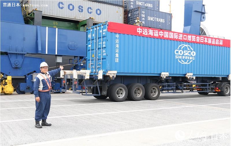 当地时间10月12日,东京青海码头负责人宣布展品起吊装船。