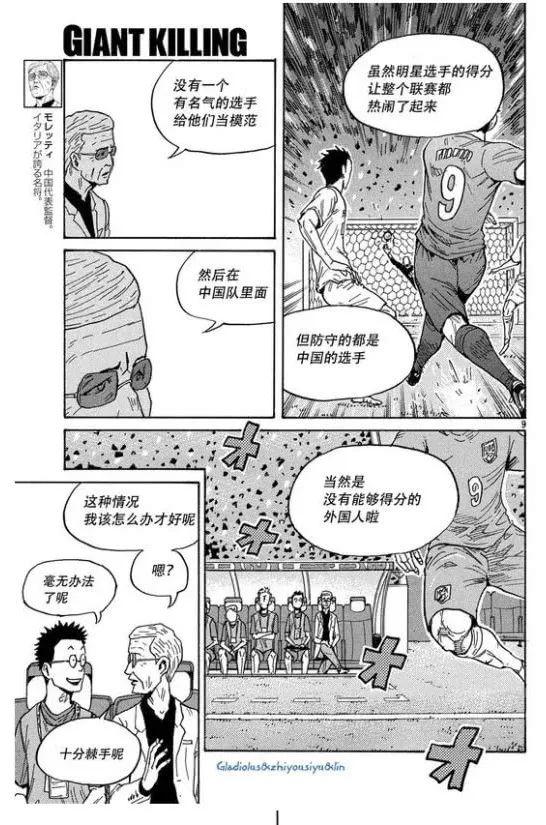 该漫画第483话中,国足在亚洲杯小组赛前两轮取得连胜且一球未失,第三轮与日本队遭遇,漫画中国足的主帅叫莫雷蒂,那长得和里皮是一毛一样啊!
