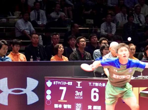 刘国梁的“死亡凝视”。 而仅仅第一场比赛,现场就坐了大约5600名球迷。其实,T联赛早在一年前就被提上了议事日程。 日本乒乓球协会理事松下浩二当时在接受《日刊体育》采访时表示,他们打算花费5000万日元(约合311万人民币)来邀请各个国家尤其是中国的顶尖球员加盟。 “招募世界顶级球员,创造世界第一水平的联赛。让我们的球员在国内,就能与世界强手比赛,得到相应的锻炼,期待在东京奥运会上与中国队争夺奥运金牌。” 松下浩二说。