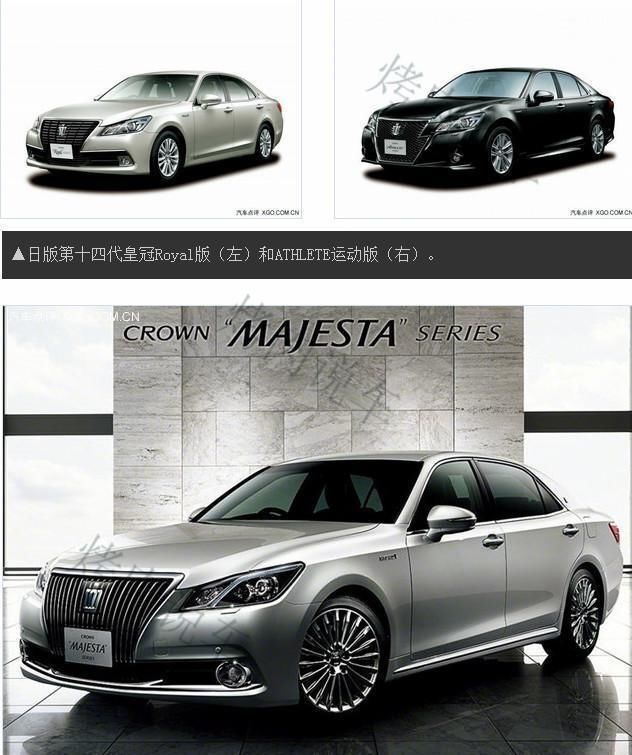 首先来说说丰田皇冠,它是丰田旗下的一个高端品牌,2005年日本全新的第十二代皇冠在国内的天津一汽丰田二厂投产,这是皇冠自诞生50年来第一次在日本本土以外生产。如今日本在售的皇冠属于第十四代,日本版的皇冠分为Royal版、ATHLETE版以及轴距经过加长的MAJESTA车型。国产版的皇冠就是基于MAJESTA车型的基础上打造而来。