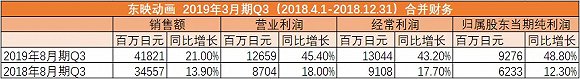 在本季度,创通依靠经典IP在版权方面稳定住了收入。但参与制作的TV动画数量下滑、角色商品的广告与合作减少、制作委员会分成缩减以及高达系列合作方拓展不足等问题,从2018财年已经开始,这些状况在本季度中并未得到明显转变,今后创通的业绩能否保持营收和利润的双增长,值得观察。 4、东宝:业绩稳定,但缺爆款作品