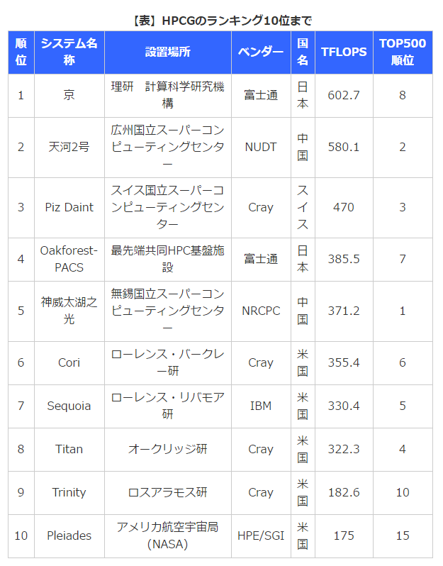 世界超级计算机实用性能排行榜 图片来自日本读卖新闻 |