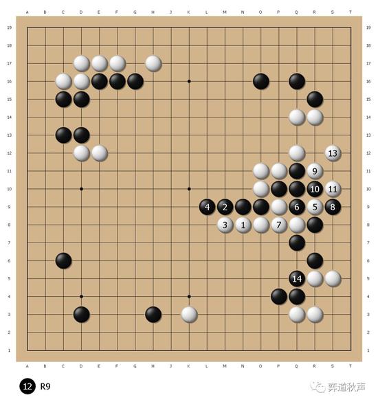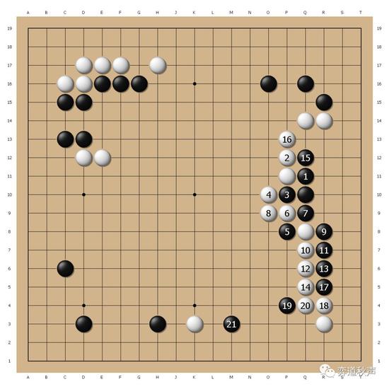 白1、3无奈后推车,白5扳下定型。 白13虎补后,黑14再挡住右下。 白棋被分成几块,下方阵势也自然消失,而黑棋中腹四子和右边一块处理起来都不困难,小鱼儿已经掌控了棋局。 於之莹充分发挥实力,中盘击败佃亚纪子,顺利杀进决赛。日本四员女将一共只赢了一盘棋(佃亚纪子还将和黑嘉嘉争夺第三名),眼睁睁看着决赛权被中韩女将拿走,再次花了钱买炮仗给别人放。不过日本围棋要想重振,就得反复经历这些打击。
