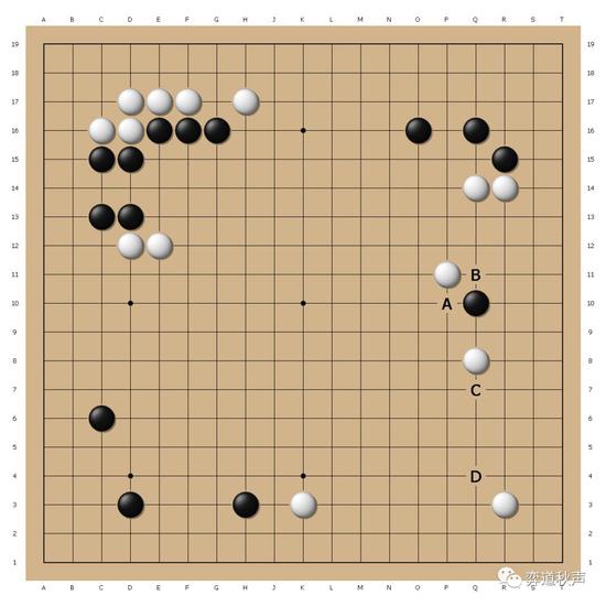 如图 黑先 开局未几已经形成黑棋主动的局面。现在白棋在右边强行肩冲黑棋边上星位一子,黑棋局部应对方法有多种,我们拿出四种思路上有所不同的下法,A、B、C、D后的演变都将是什么样的呢?您可以根据自己的计算、判断来进行选择。 附局面图形成过程