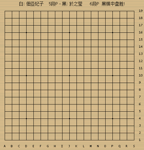 佃亚纪子首轮胜娜塔莉亚 附全局棋谱供大家欣赏: 第二届“扇兴杯”世界女子围棋最强战半决赛 黑:於之莹 六段 白:佃亚纪子 五段 共213手 黑中盘胜 对局日期:2019年2月23日 对局地点:日本东京日本棋院